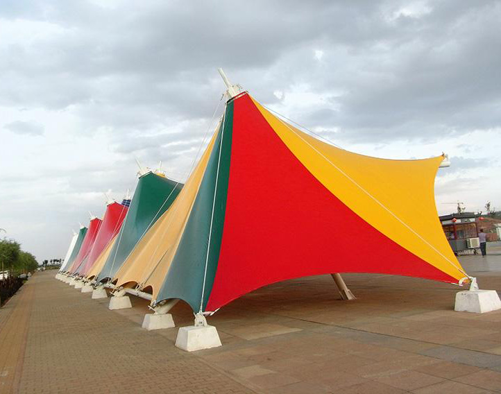 索膜結(jié)構(gòu),它是一種建筑與結(jié)構(gòu)結(jié)合的結(jié)構(gòu)體系.它是用高強(qiáng)度柔性薄膜材料與支撐體系相結(jié)合形成具有一定剛度的穩(wěn)定曲面,能承受一定外荷載的空間結(jié)構(gòu)形式.索膜結(jié)構(gòu)的清洗:用PVC清洗劑加入水中,建議用洗車(chē)用的噴水槍先將加清洗劑的水噴到膜上,再用軟刷刷一遍即可,也可以用長(zhǎng)桿前端裹上軟布擦洗.